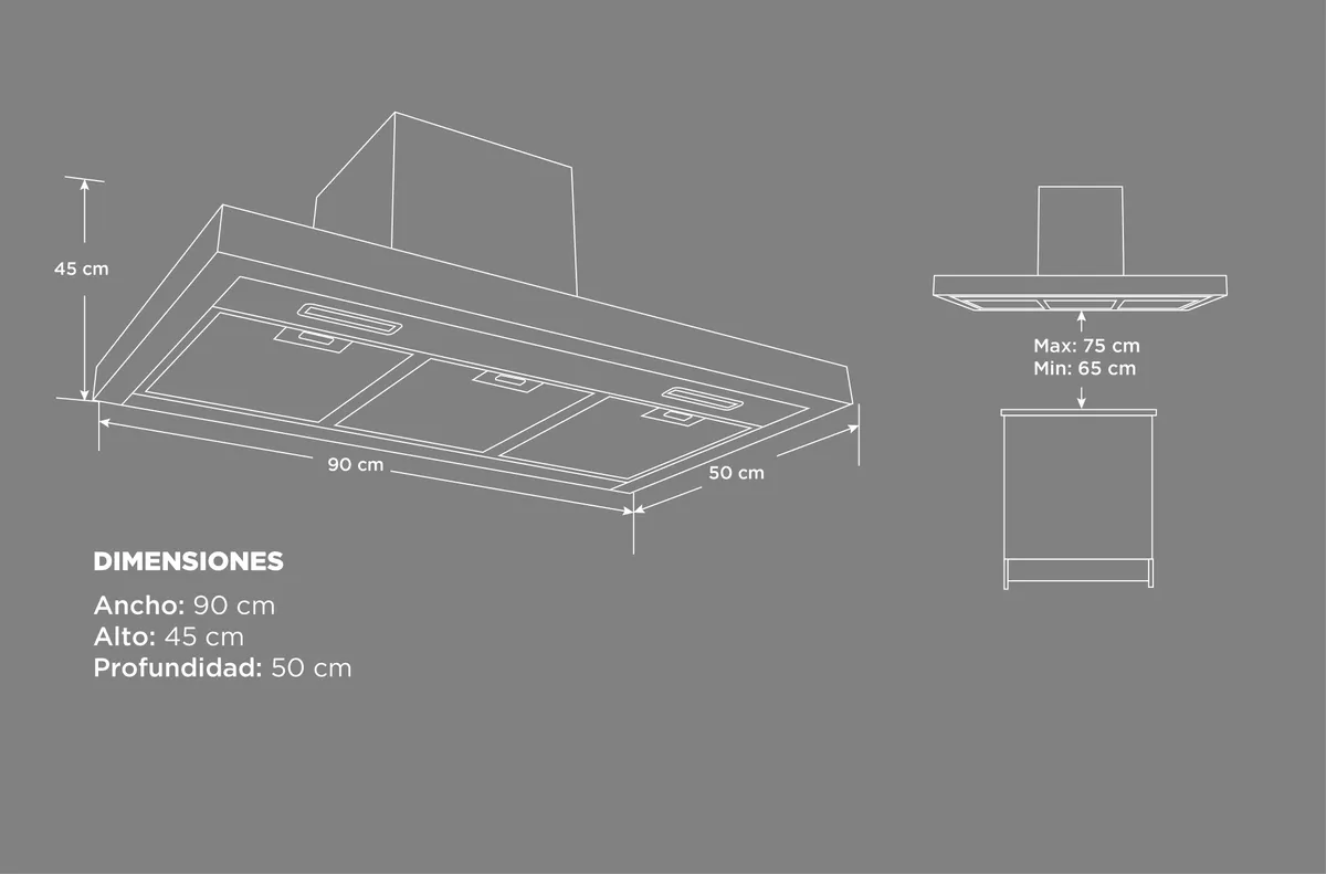 Campana de Cocina Decorativa Empotrable Gris 90cm